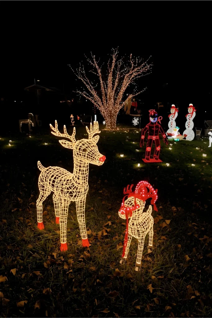 Place light-up reindeer, snowmen, or Santa figures around the backyard. These add a magical touch that both kids and adults love.