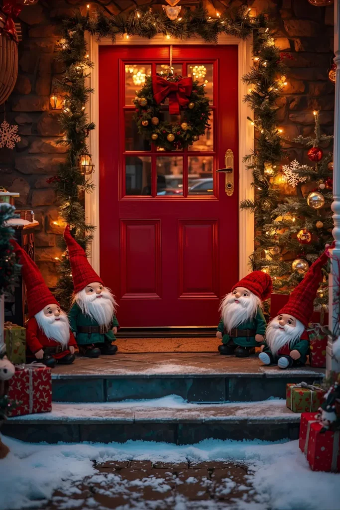 Place adorable Christmas gnomes, elves, or plush Santa figures near your entryway for a touch of whimsy. These friendly little characters instantly make guests smile and bring playful energy to your decor.