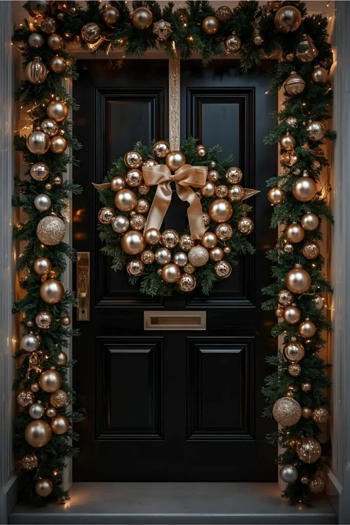 If you love a modern or luxurious vibe, metallics are your best friend. Incorporate gold, silver, or rose-gold ornaments into your garlands and wreaths. Add metallic ribbons or glittering bows for a chic finish that sparkles beautifully at night.