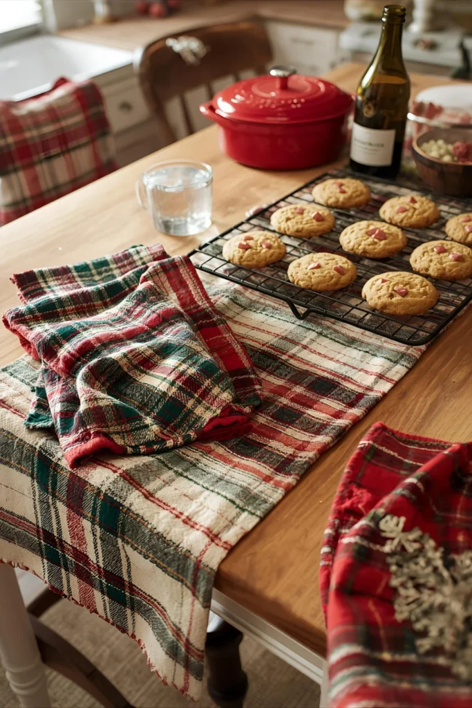 You can mix patterns like tartan, snowflakes, or reindeer prints to add visual interest. This is also a wonderful way to make your everyday kitchen feel festive without major decorating.