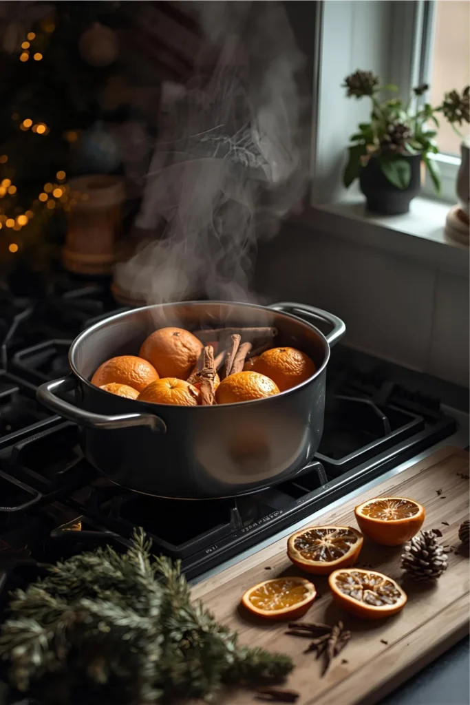 If you prefer real candles, go for cinnamon or pine-scented ones they’ll make your kitchen smell like a cozy Christmas cabin.