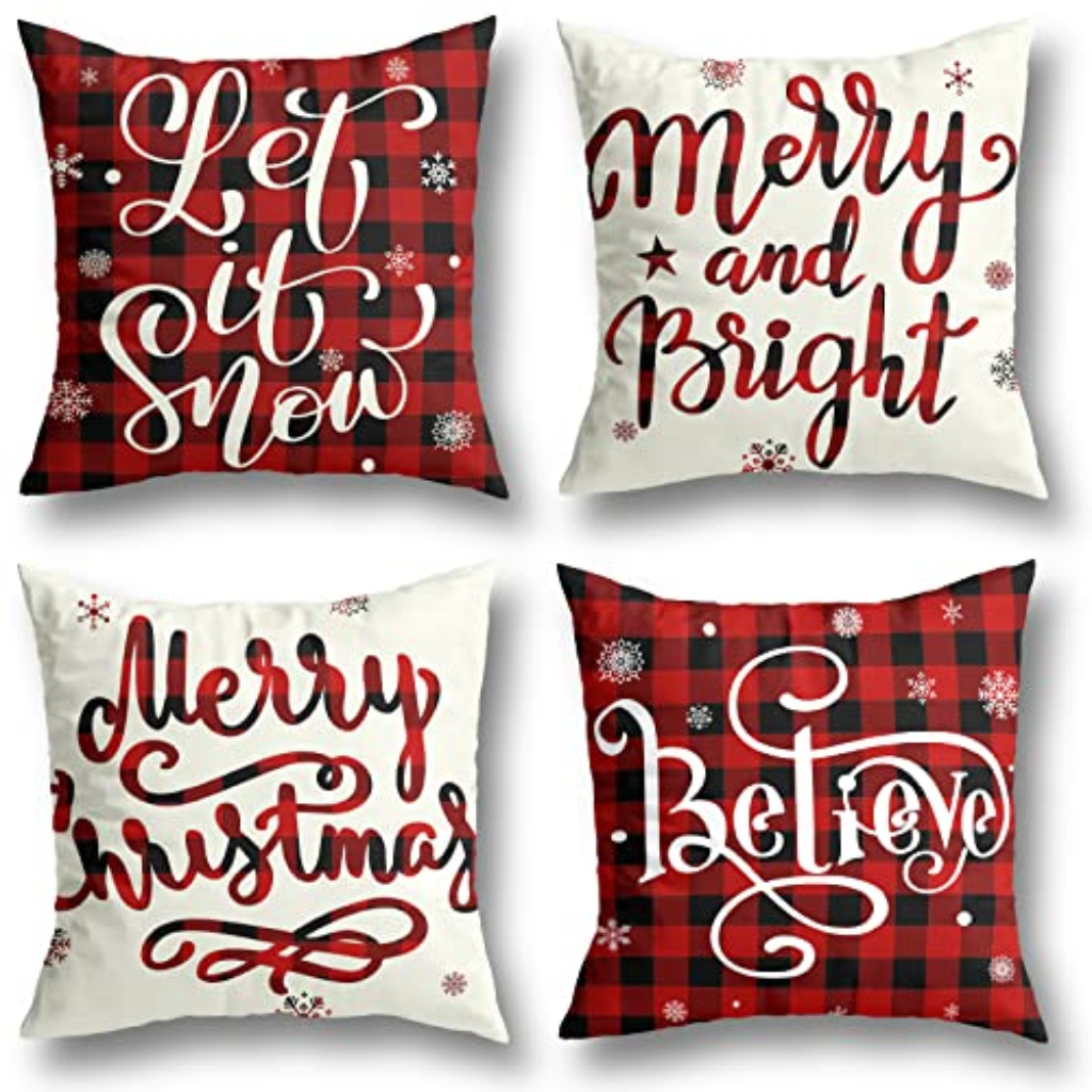 If your mudroom has a bench, a few holiday throw pillows can transform the entire room. Choose styles with winter patterns, cable-knit textures, snowflakes, reindeer designs, or simple red-and-white stripes.