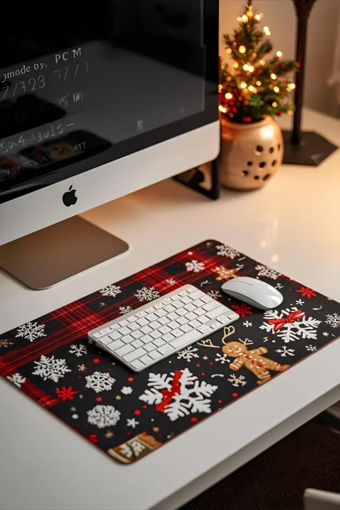 Swap your regular mouse pad for a Christmas-themed one snowflakes, gingerbread men, or plaid patterns. A holiday desk mat can completely transform your desktop surface.